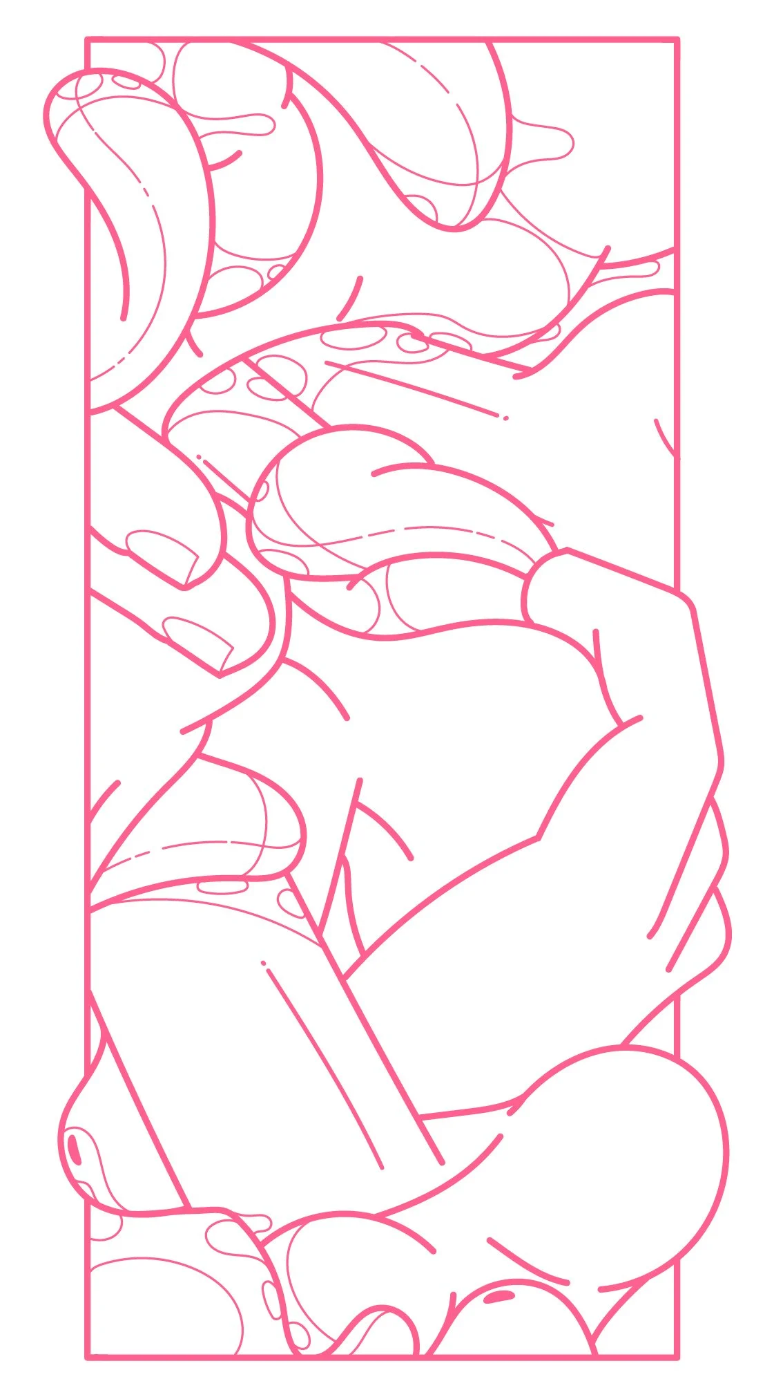 I work with faceless bodies because sex is universal. Without a face, any body can be anyone — any skin, any fantasy, yours or mine. I deliberately use pastel palettes and a “cute” aesthetic to give something that could be shocking a softer entry point — more poetic, more accessible.